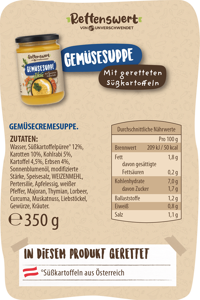 Das Ziel von Rettenswert ist es, langfristig einen großen Teil dazu beitragen zu können, diese Zahlen zu reduzieren und Millionen Kilo von Lebensmittel zu retten – durch ein breites und diverses Sortiment an geprüften und möglichst nachhaltigen Produkten, die alle mindestens eine gerettete Zutat beinhalten.